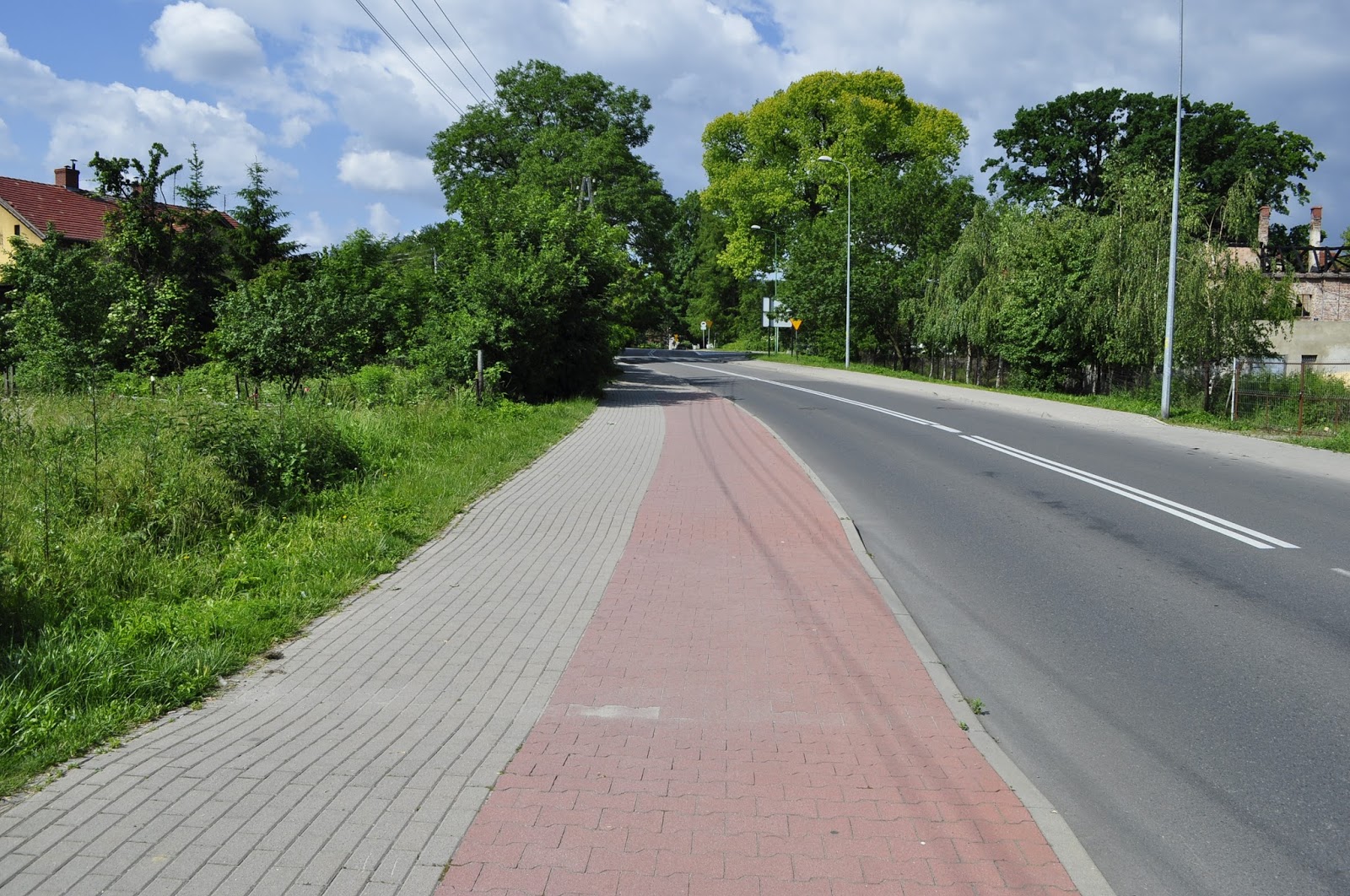 dalej po chodniku do skrzyżowania, na znak „Koniec drogi rowerowej” nie